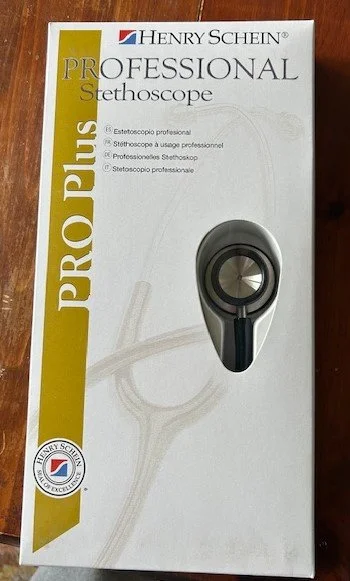 Quantity: 1Henry Schein Professional Stethoscope in white and gold packaging. Ideal for medical professionals.