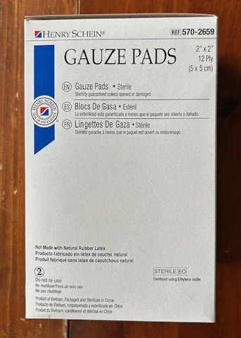 Quantity: 20 boxes (100 gauze pads/box) - wght: 6.6 oz/boxHenry Schein 100% Cotton Gauze Pad 2x2" 12 Ply Sterile Square Not Made With Natural Rubber Latex