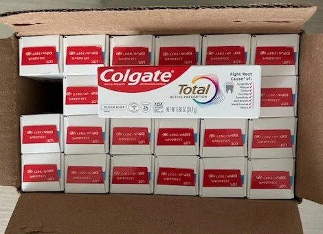 Quantity: 24 boxes of adult toothpastes (24 trial size tubes/box) wght: 0.88 oz per tube.Quantity: 25 boxes of children toothpastes (24 trial size tubes/box) wght: 0.85 oz per tube